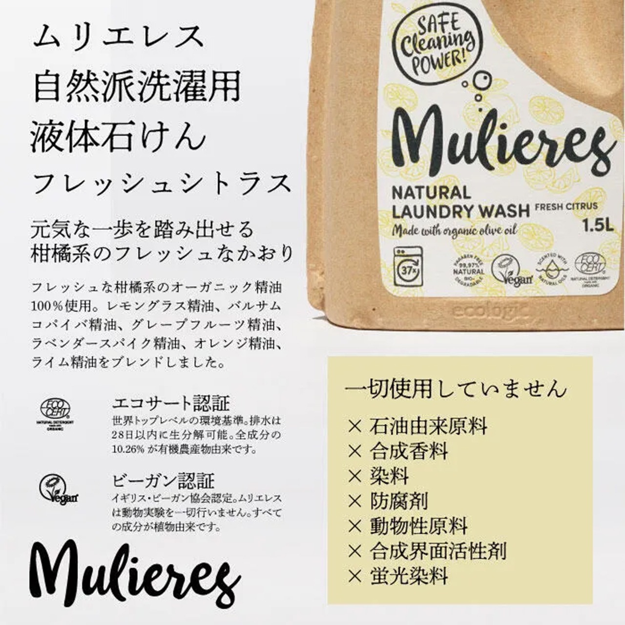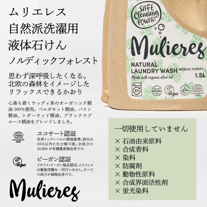 【ムリエレス】自然派 無添加 オーガニック 洗濯用 液体石けん フレッシュシトラス/ノルディックフォレスト/ローズガーデン <本体ボトル 1.5L + 詰替 1L> |ビーガン 洗剤 環境にやさしい 敏感肌 アレルギー 過敏症 赤ちゃん | 地球とみんなにいいものセレクトショップ-TSUNAGOOD-shop サステナブル通販