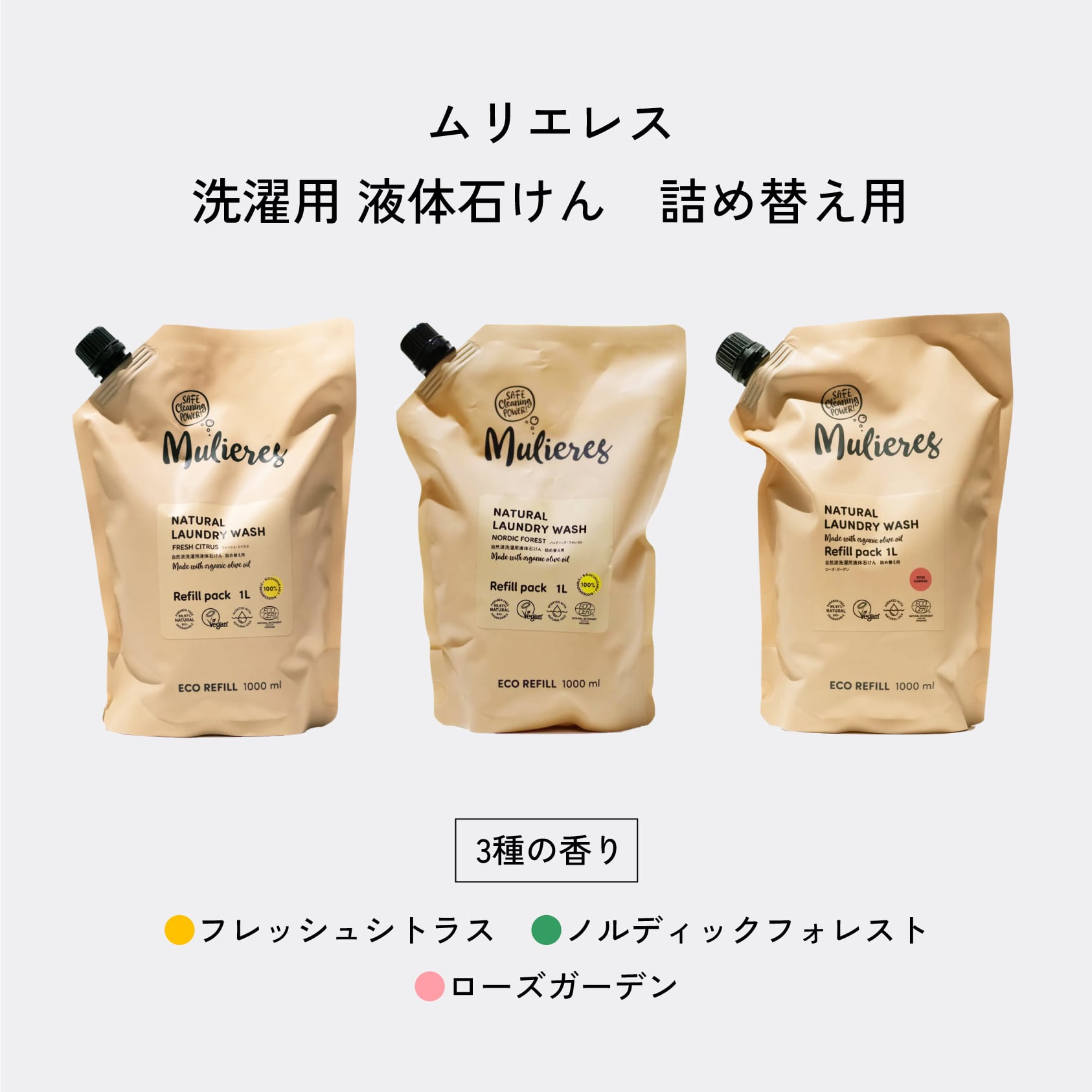 【ムリエレス】自然派 無添加 オーガニック 洗濯用 液体石けん フレッシュシトラス/ノルディックフォレスト/ローズガーデン 詰替 1L × 1袋|ビーガン 洗剤 環境にやさしい 敏感肌 アレルギー 過敏症 赤ちゃん | 地球とみんなにいいものセレクトショップ-TSUNAGOOD-shop サステナブル通販