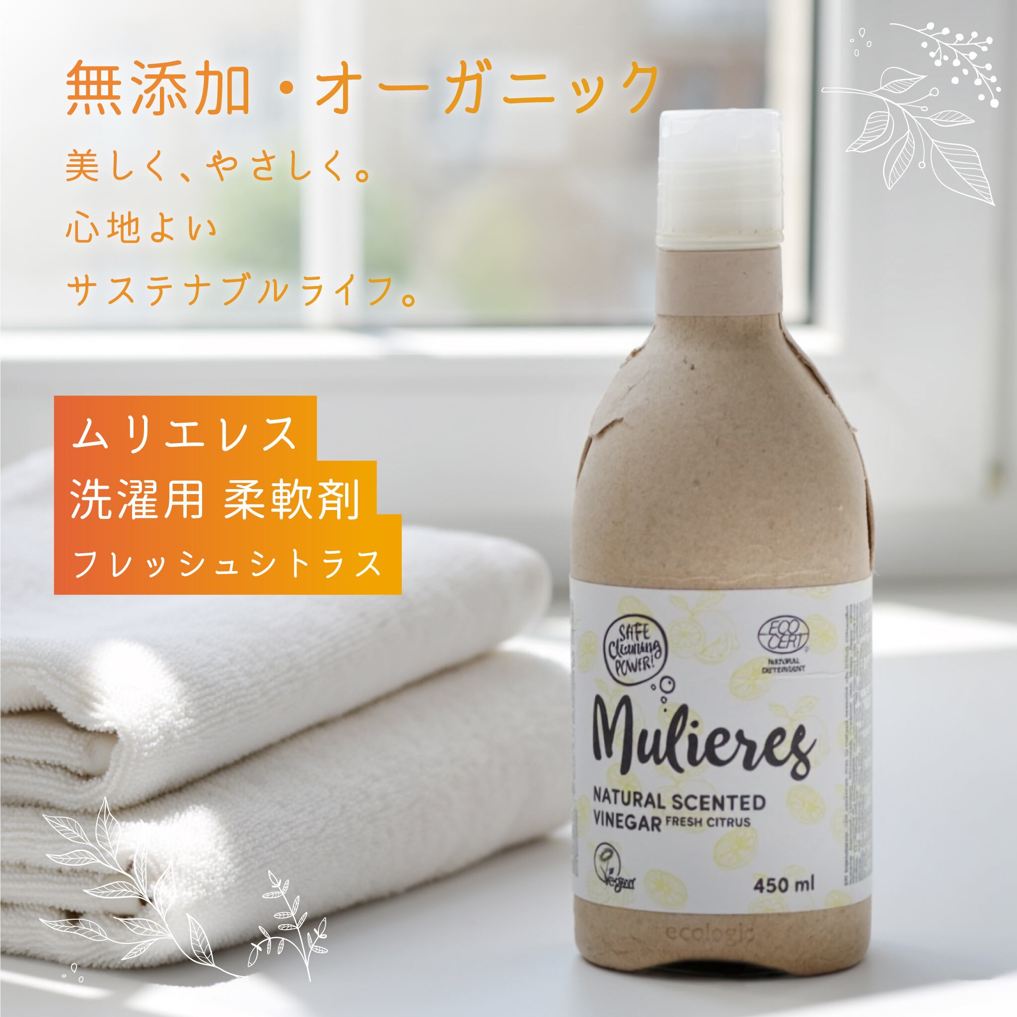 【ムリエレス】自然派 柔軟剤 フレッシュシトラス 本体 450ml|オーガニック エコサート お酢の力 環境にやさしい 敏感肌 | 地球とみんなにいいものセレクトショップ-TSUNAGOOD-shop サステナブル通販