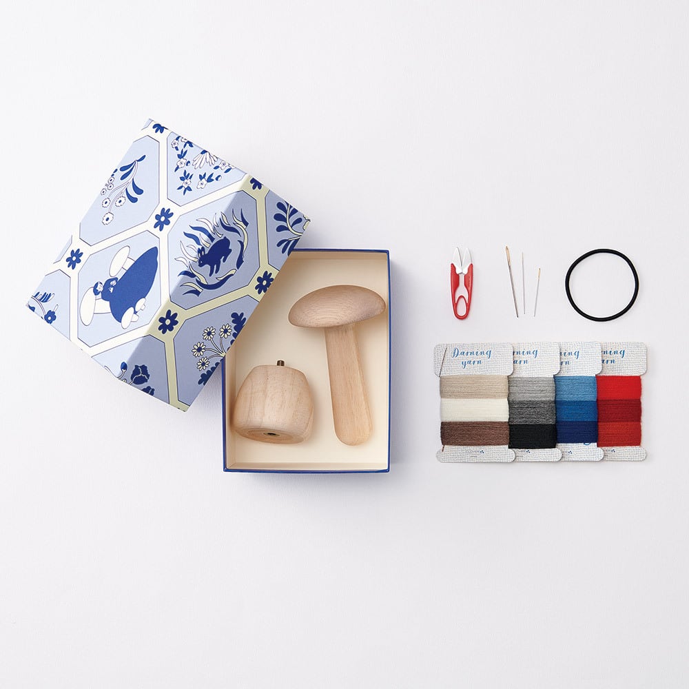 【内容物】ダーニングマッシュルーム(かさ・ハンドル・台座 各1個)、手芸針3種(ケース入)、糸切はさみ(ケース入)、リングゴム、ダーニング糸(3色巻・4種類)、収納ボックス、説明書材質天然木、鉄、鋼、ステンレス、ABS樹脂、ウール、アクリル、紙(収納ボックス・パッケージ)